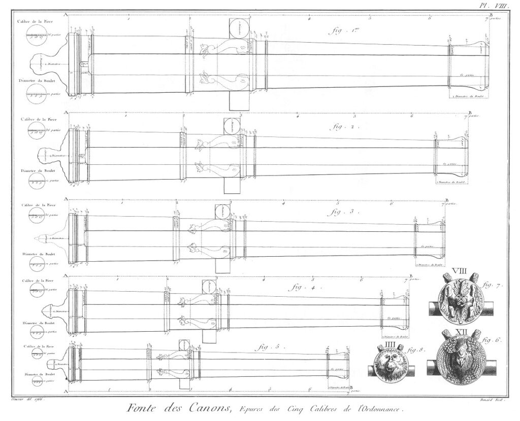 I 1730’erne fik det franske artilleri den gode idé at standardisere størrelsen af kanoner i 5 klasser: 4-, 8-, 12-, 16- og 24-punds kanoner, efter vægten af de tilhørende kanonkugler. I 1750’erne standardiserede man også lavetten, mest af æstetiske hensyn – det skulle gerne se ensartet ud. Det havde den interessante bivirkning at delene var ombyttelige, da lavetterne jo var bygget ens.