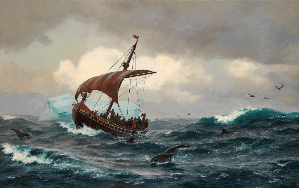 I 874 slog norske vikinger sig ned i Island, og i slutningen af 900-tallet bosatte Erik den Røde sig i Grønland.